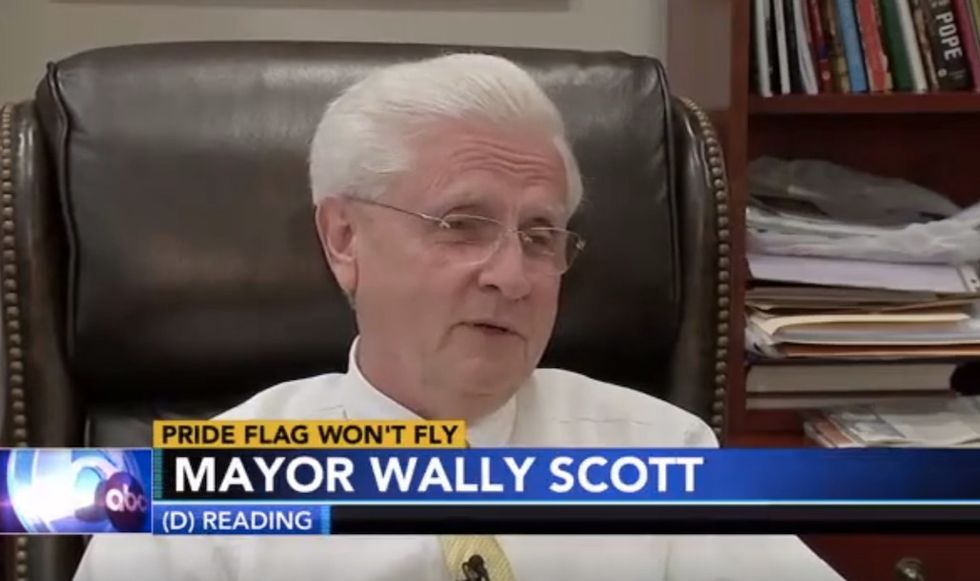 The administration of Reading, Pennsylvania, has been accused of discrimination after Mayor Wally Scott canceled a gay pride flag-raising ceremony at city hall on Monday, WFMZ-TV reported.