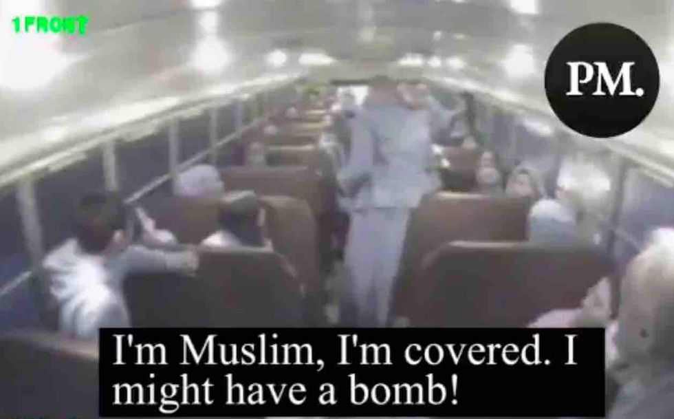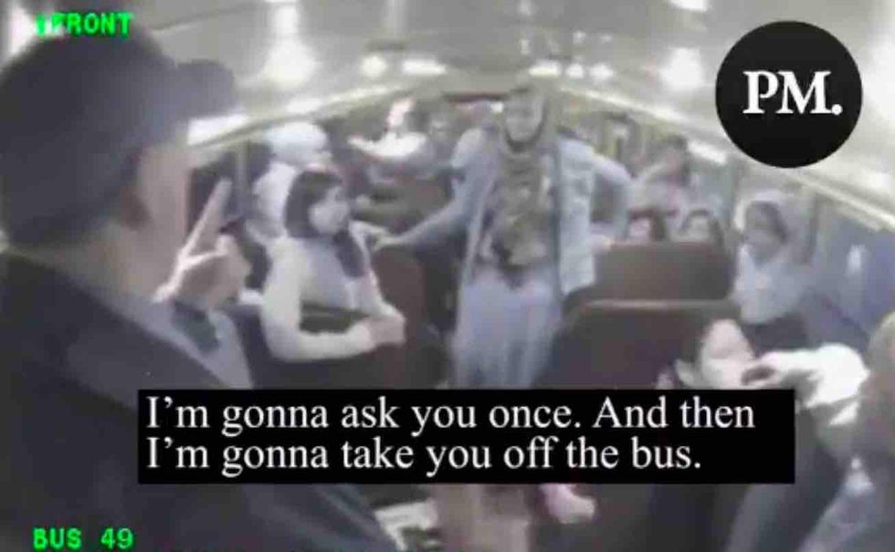 Soon Gardheere is walking down the aisle and yelling at the kids, one of whom apparently questioned if she was truly armed. "How do you know?" she yelled. "I'm Muslim, I'm covered — I might have a bomb."