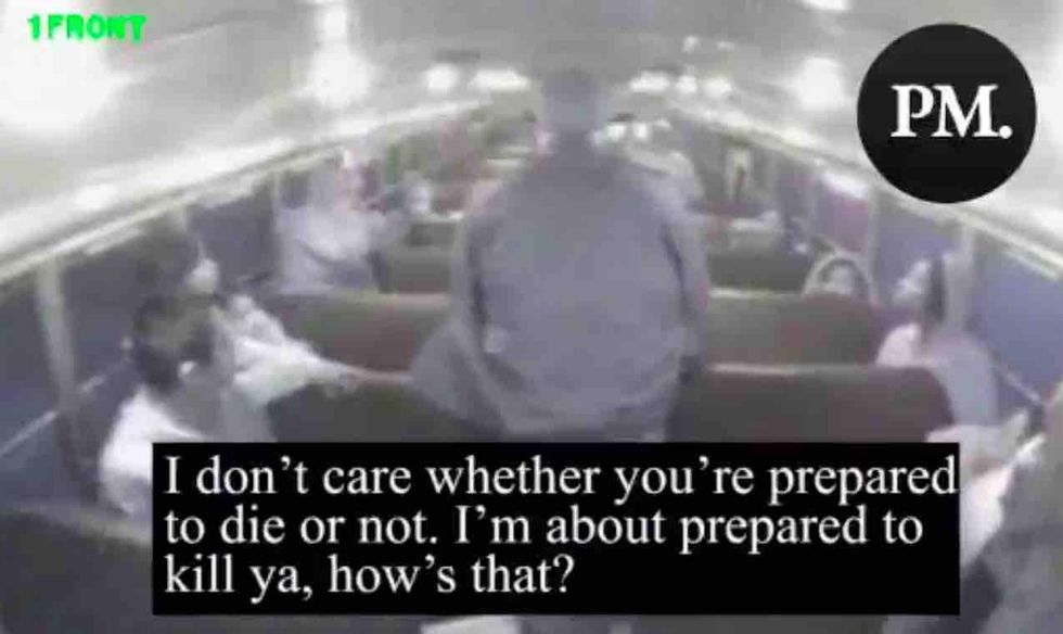 Gardheere appears calm enough in the face of authority — and so the cop turns up the heat: "I'm gonna ask you once, and then I'm gonna take you off the bus."
