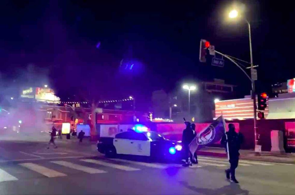 The second video below is the clip Newsweek uses; its caption from self-described "Gonzo anti-fascist/anti-racist reporter" Vishal P. Singh tells an even more sinister tale: "LAPD just ran over two protesters at the Hollywood Breonna Taylor march."
