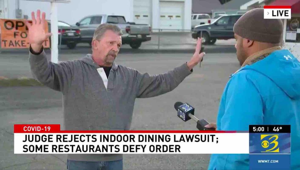 Instead he walked up and interrupted WWMT-TV's segment on restaurant owners defying a statewide ban on indoor dining — and it turns out Morris has been doing just that.