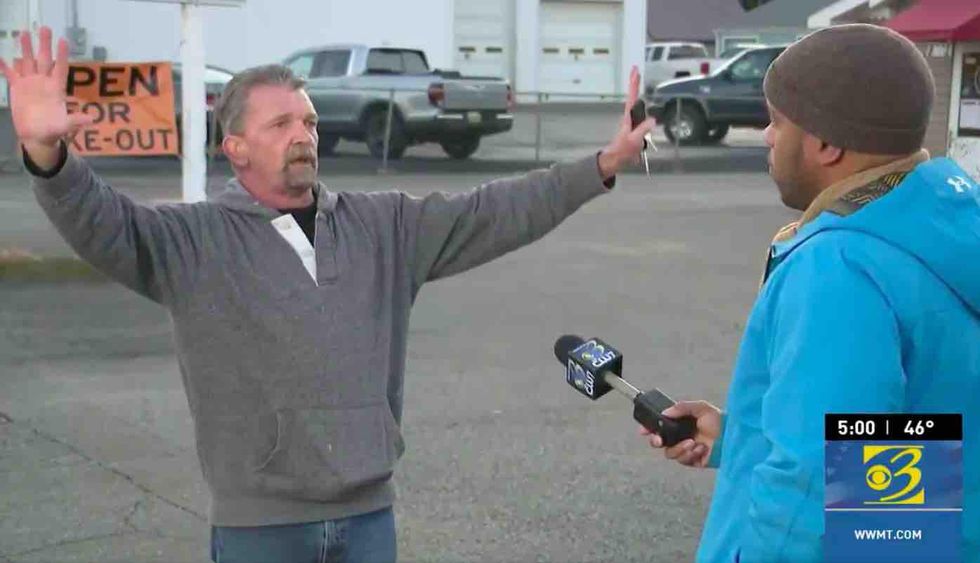 Dave Morris saw the news camera and reporter in front of his Michigan restaurant Wednesday and apparently decided he wasn't going to wait to be interviewed.