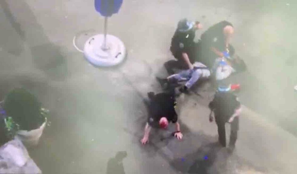 Video of the incident — which took place after 9:30 p.m. near the Herald Square area, where many stores, including the Macy's flagship, were looted, the station said — shows the officers trying to take an individual into custody for resisting arrest.