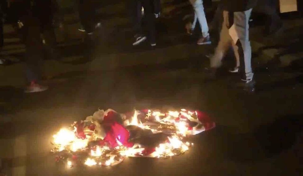 Protesters even marched to the mansion of Democratic Gov. Roy Cooper and took flags off poles and burned them, a Raleigh police officer told the station around 1 a.m. Wednesday.