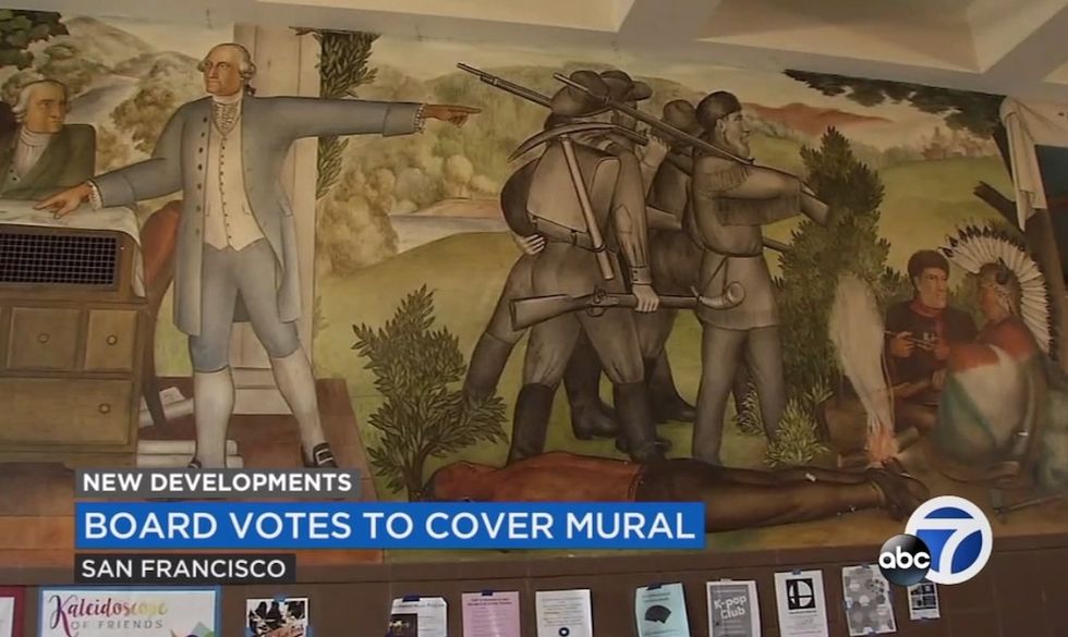 After outcry against destroying a high school's historic George Washington mural — since it "traumatizes students" and "glorifies slavery" and "genocide," a group ruled — the San Francisco school board voted to cover the mural instead, KGO-TV reported.