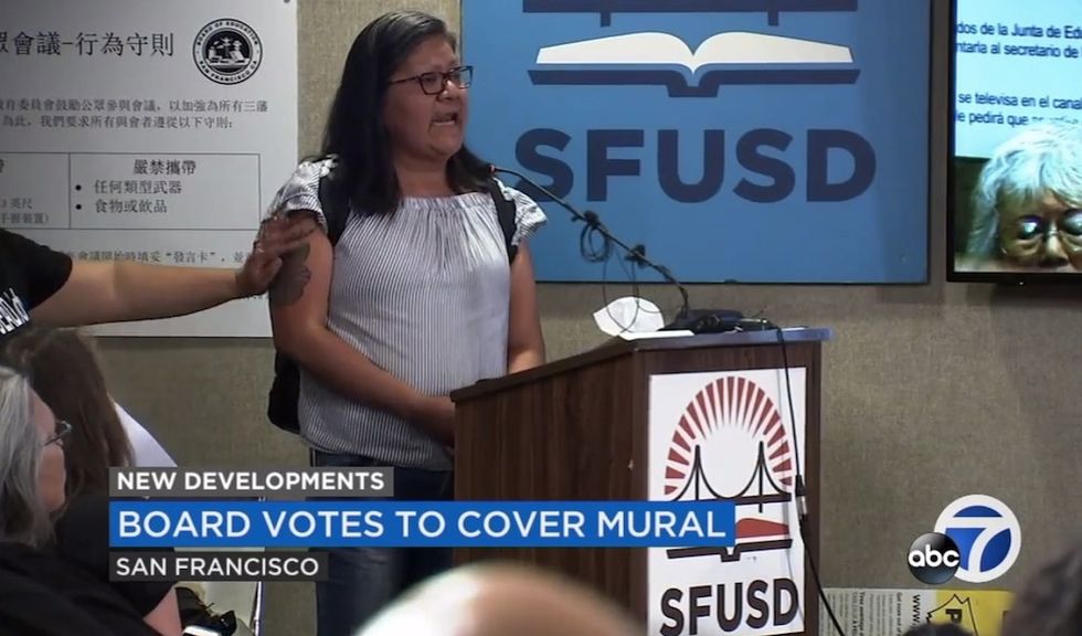 Tuesday's decision — which passed 4-3 — reverses a board decision in June to paint over the mural at George Washington High School, the station said. Board commissioner Mark Sanchez in June defended the paint-over cost as "reparations," KQED-TV reported.