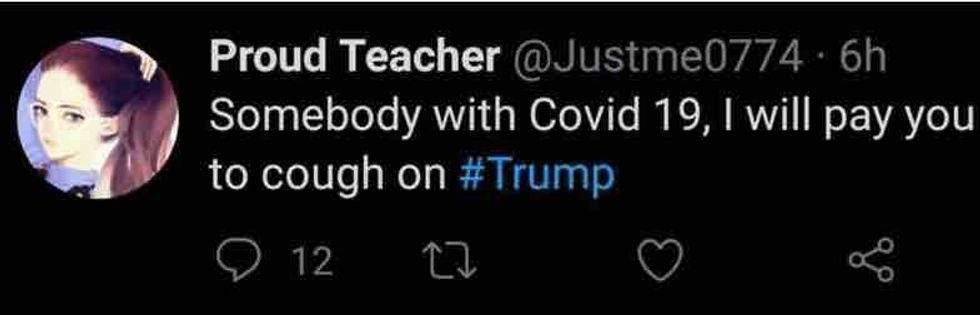 "Somebody with Covid-19, I will pay you to cough on #Trump," Bednarz allegedly tweeted in March, WJAR said.