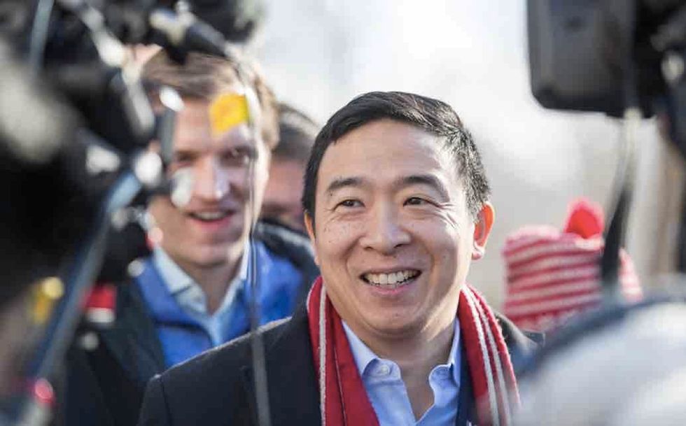 With that, Adams humorously lamented Yang's lack of female gender as well as the fact that he doesn't check off the correct minority status box, either.