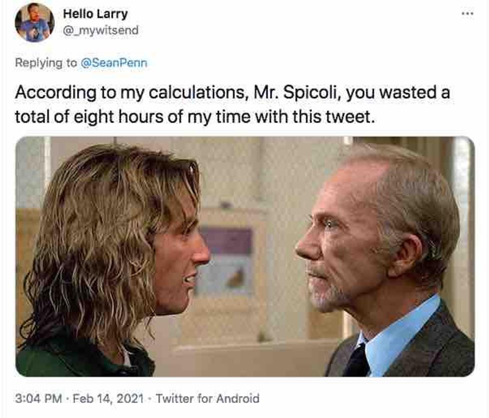 Other commenters naturally saw an opportunity to refer to Jeff Spicoli, Penn's iconic stoner character from "Fast Times at Ridgemont High." One played off a line by Mr. Hand — Spicoli's faculty nemesis: