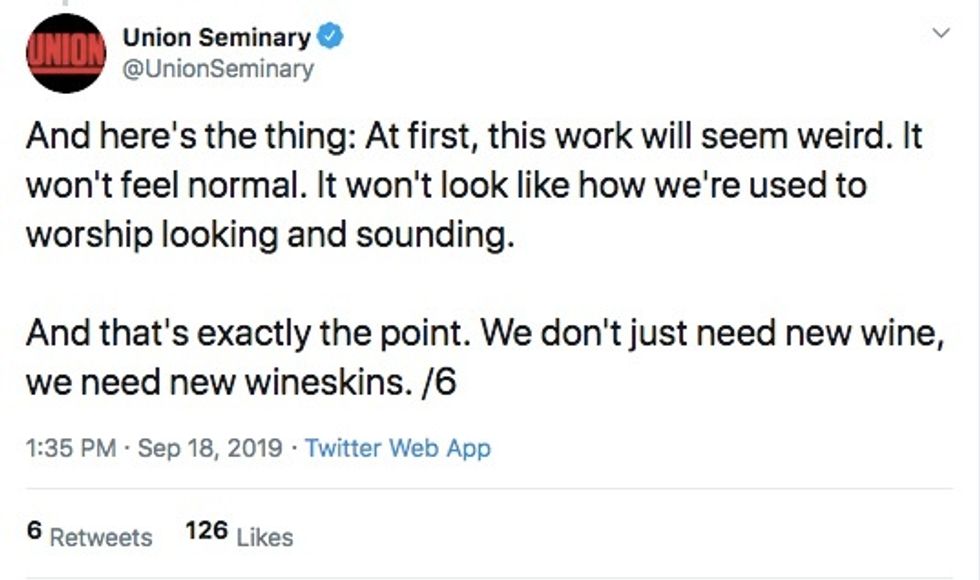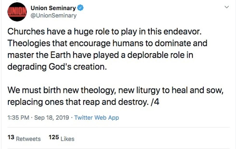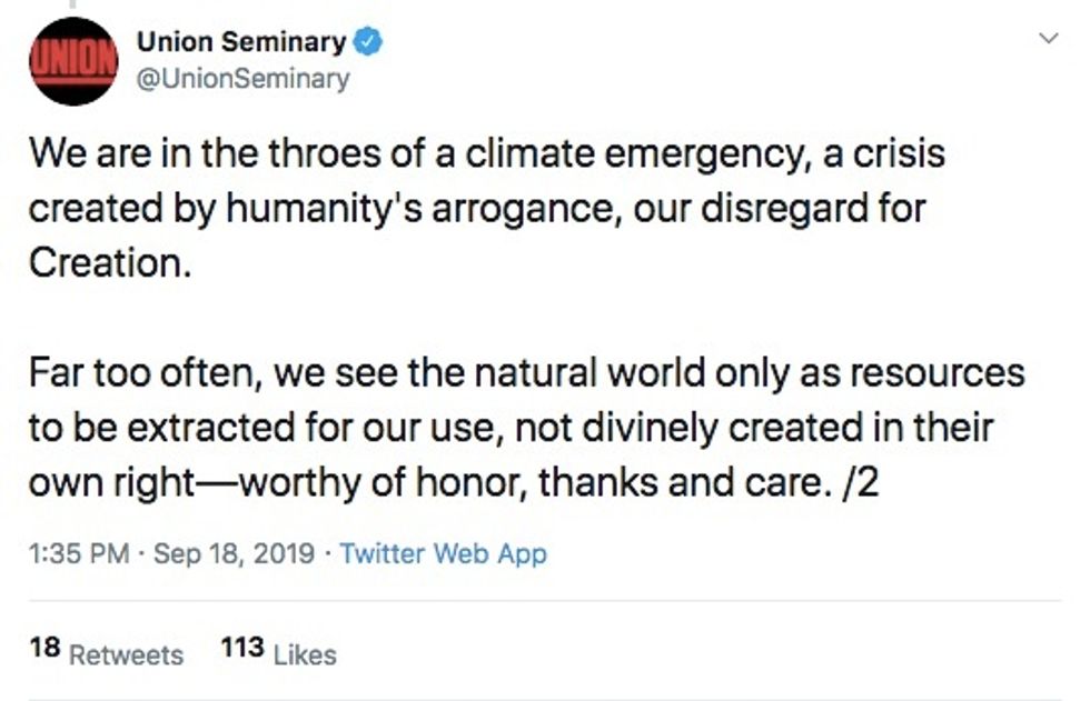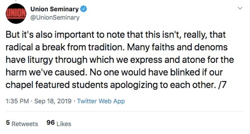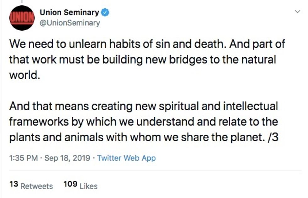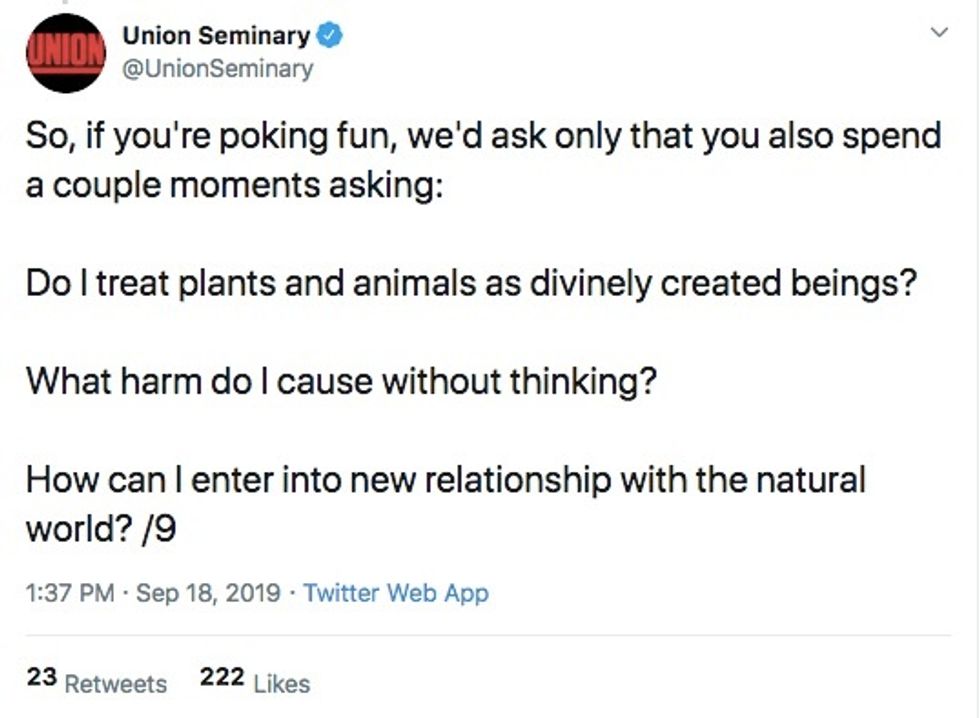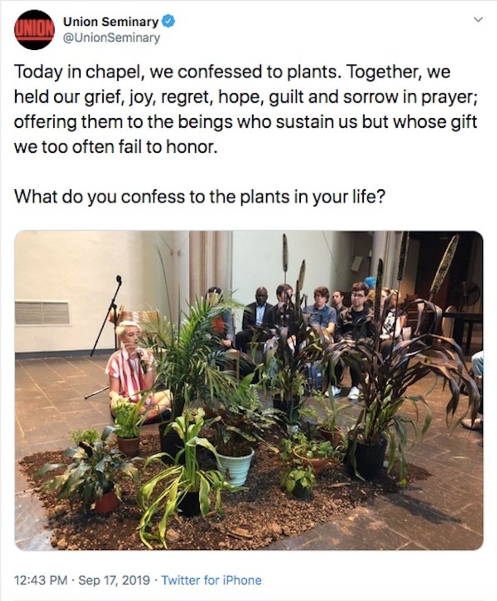 Union Theological Seminary announced that during a Tuesday chapel service "we confessed to plants."