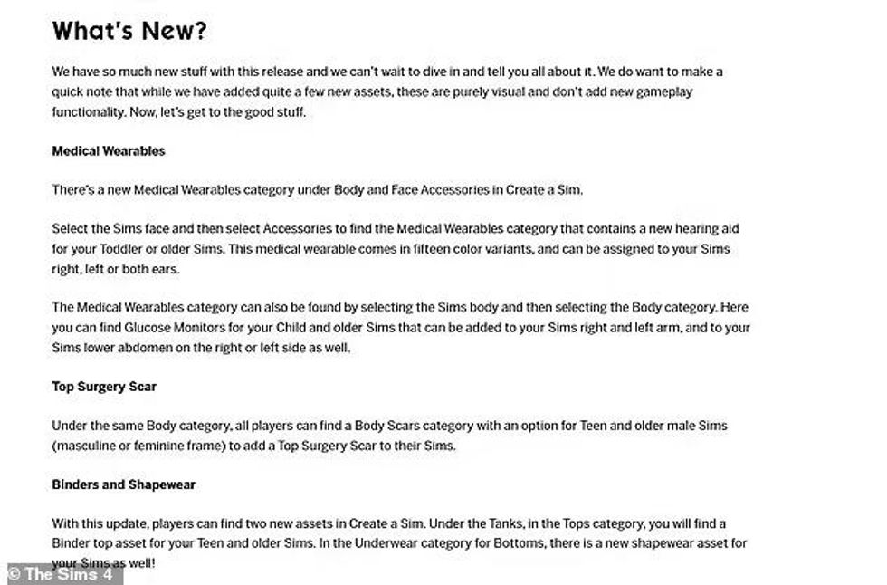 The Sims 4 announced in an update that not only will the company be adding wearable medical devices for characters, but also the ability to add chest scars and chest binders.