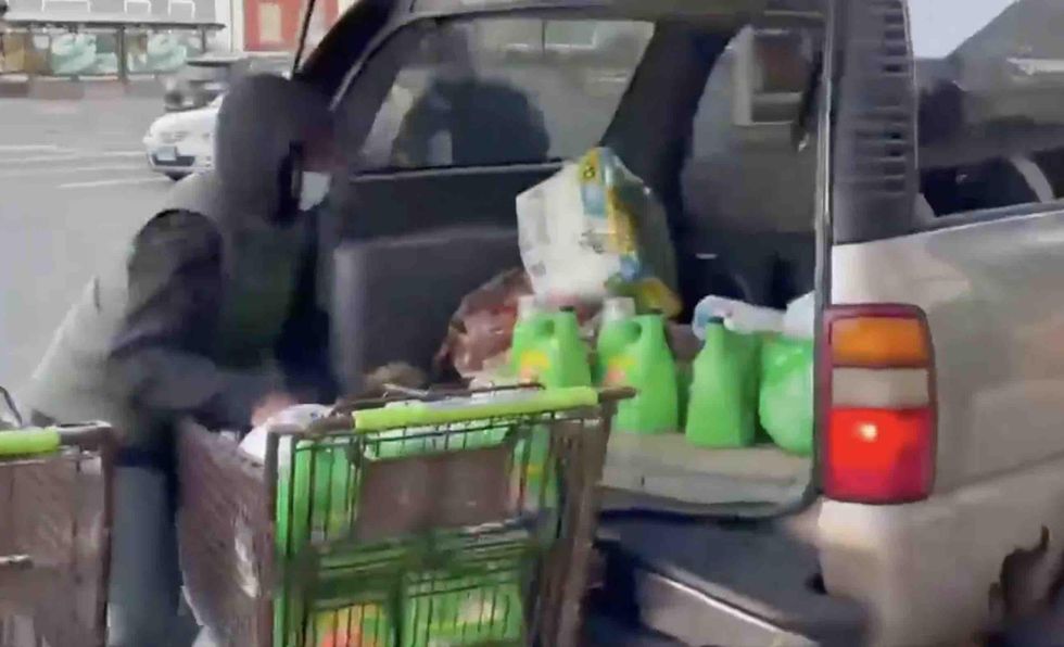 Cellphone video recorded four masked individuals loading shopping carts full of unpaid-for merchandise from the Market 32 store into a pair of SUVs just after 6:30 a.m. Tuesday, WFSB-TV reported.