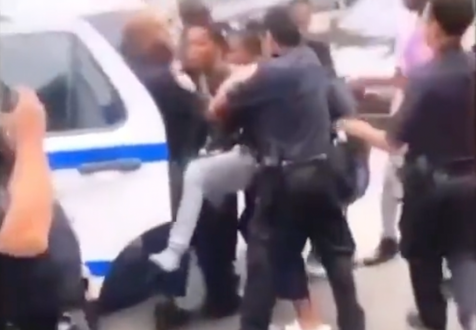 Cellphone video captured people punching and spitting on New York City police officers as they attempted to make an arrest Tuesday evening on an East Harlem street, the New York Post reported.