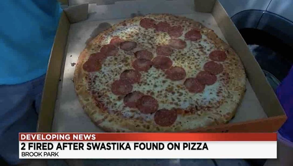 So they took a photo of the pizza featuring the pepperoni swastika — which was backward — and posted it to social media, WOIO reported.