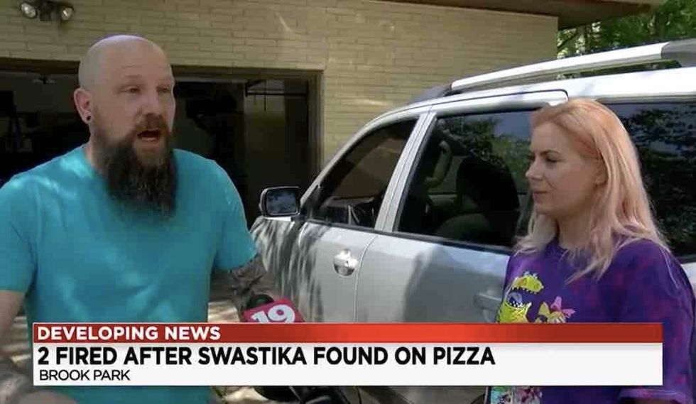 But he and his wife Misty said they were shocked to find a swastika on the pizza formed by pepperonis, WOIO-TV reported.