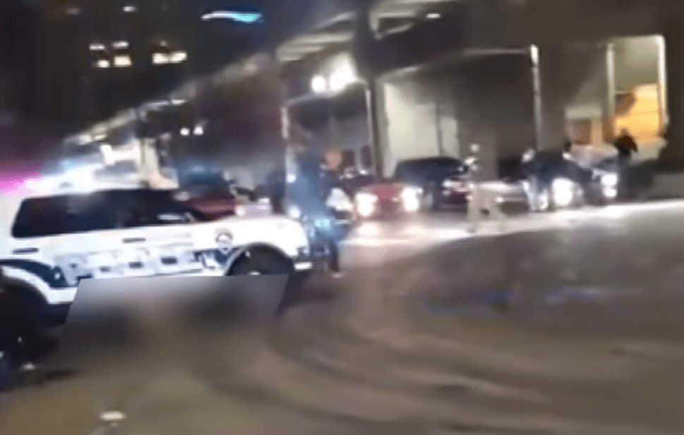 Videos from the scene of the incident show the stopped police SUV and the crowd gathered around it. Then the police vehicle accelerates forward, plowing into the crowd. The vehicle knocks several people to the ground, and one man is seen in the video being run over by the front and rear tires.