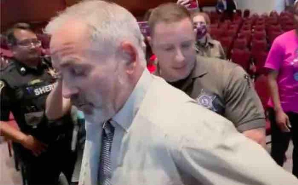 Tigges said he was arrested around 5:45 p.m. after attendees were ordered to leave the room. Video shows Tigges arguing with officers, telling them they're complicit in suppressing free speech, when one of them asks Tigges if he's refusing to leave the room.