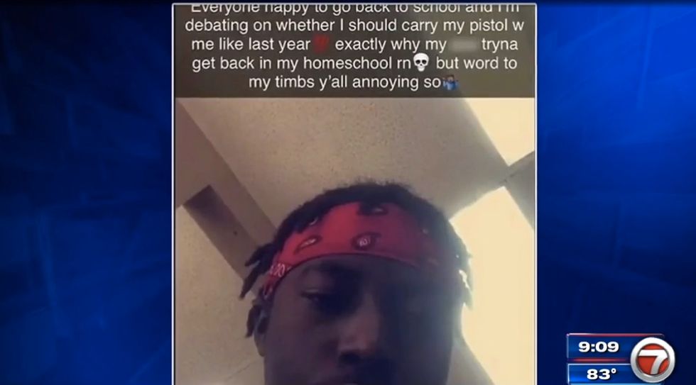 The post uploaded to his social media account was followed by a photo accompanied by text reading in part: "Everyone happy to go back to school, and I'm debating on whether I should carry my pistol with me like last year," WSVN said.
