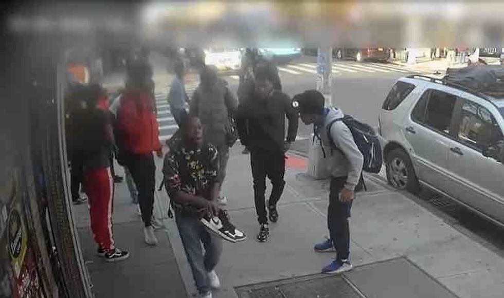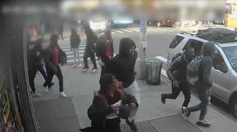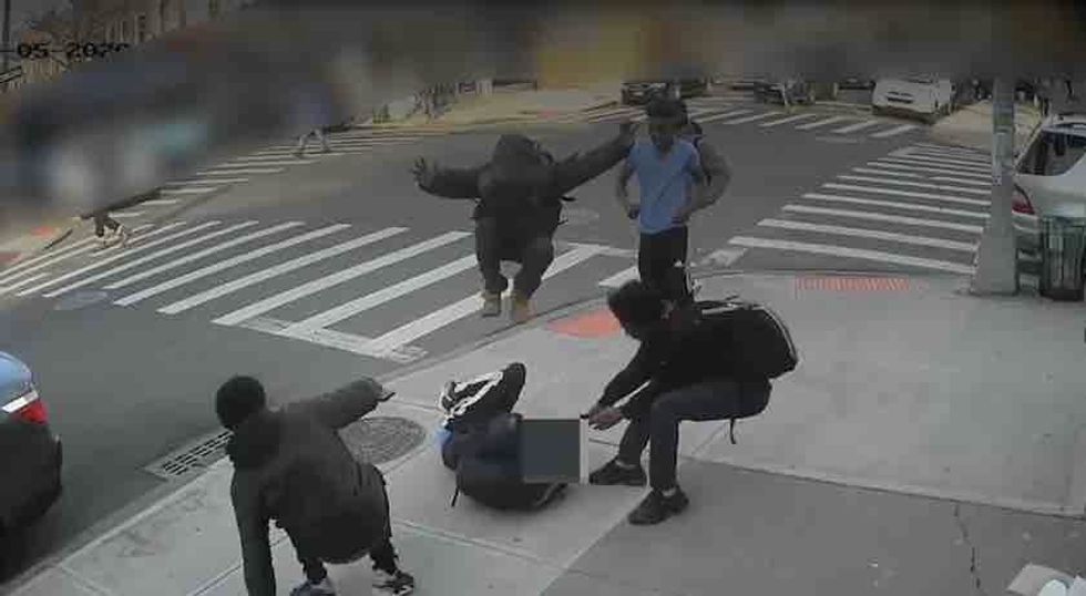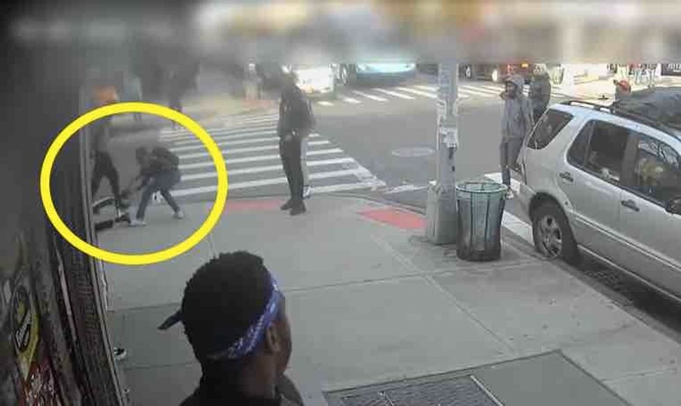 The 4 p.m. incident was caught on surveillance video on Utica Avenue near Sterling Place in Crown Heights, the station said.