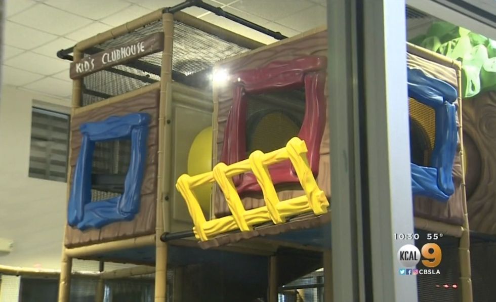 The mother's little girls — 2 and 5 — were in the play area at the time