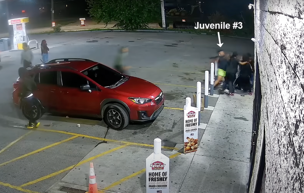 Surveillance video caught the terrifying moments when multiple juveniles — some with guns — beat up a man who appeared to be minding his own business as he sat outside a gas station store in Cleveland early Tuesday.