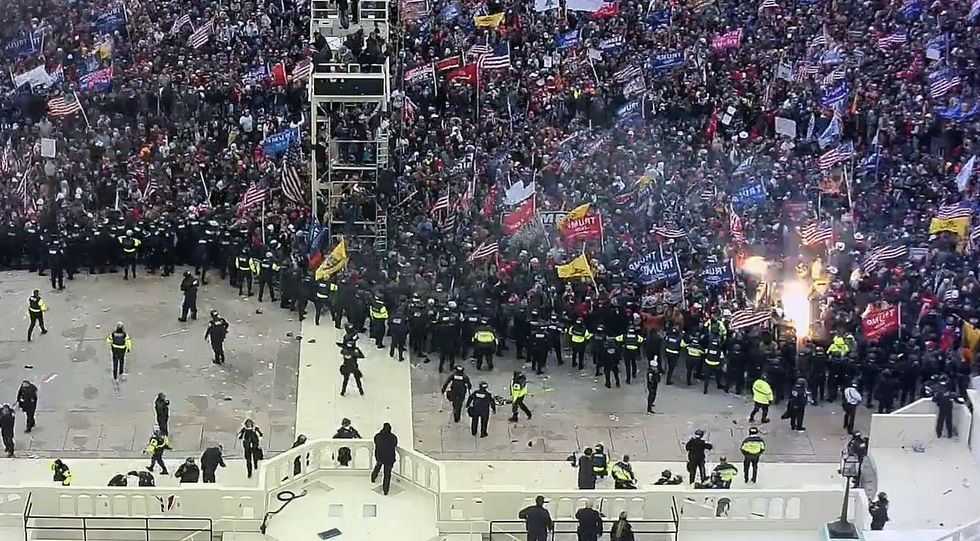 The crux of the Middletons’ case was what took place at the police line on the Capitol's West Plaza at about 2:10 p.m. on Jan. 6. The large crowd on the north side of the plaza pressed against the bike racks police were using to hold demonstrators back.
