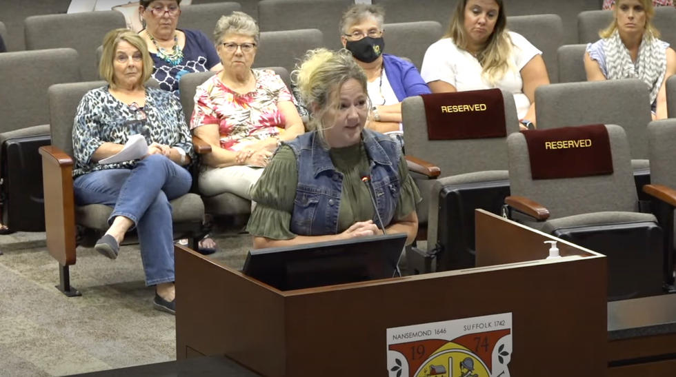 A woman addressed the Suffolk school board during the public comment portion of the Aug. 10 meeting and told the board she wanted to use her time at the microphone to "pray for Suffolk Public Schools with all of you."
