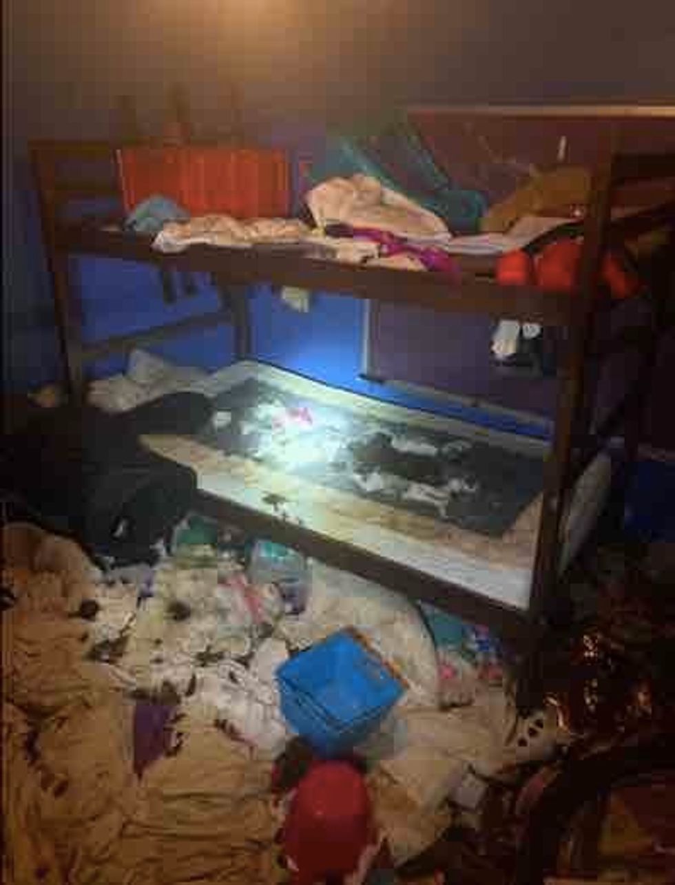 Police said they found a dead guinea pig in a cage, rotting food, as well as animal feces and urine throughout the residence.