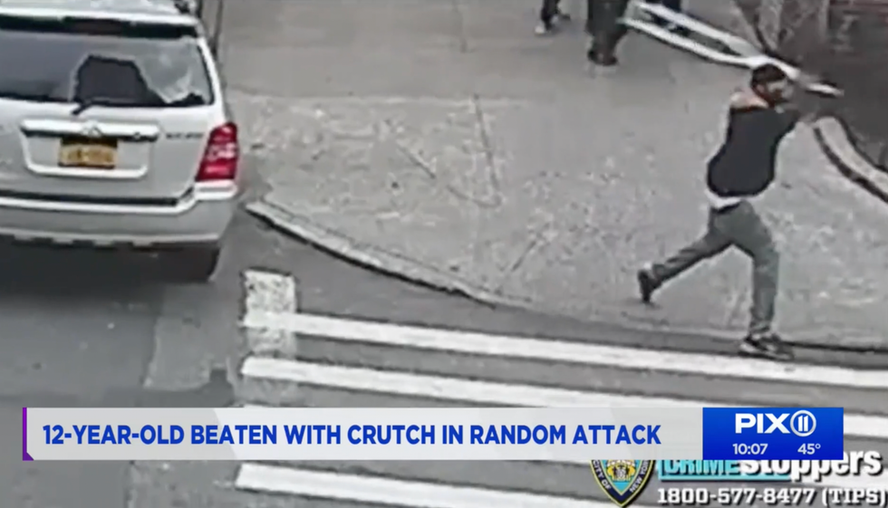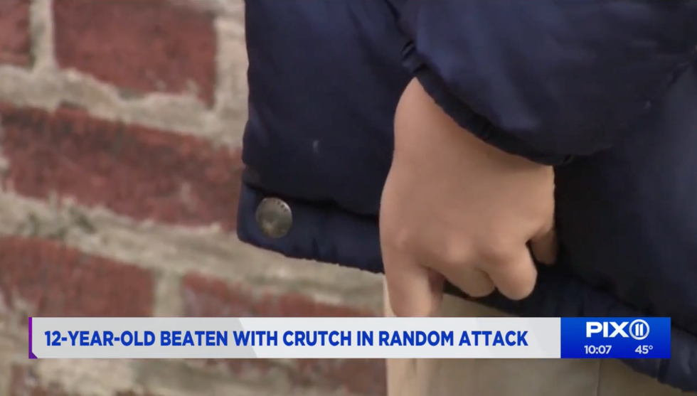 According to WPIX-TV, the boy was headed to school on Caton Avenue around 7:40 a.m. Nov. 17 when a man came up from behind and struck him several times with the crutch while the boy was in a crosswalk.