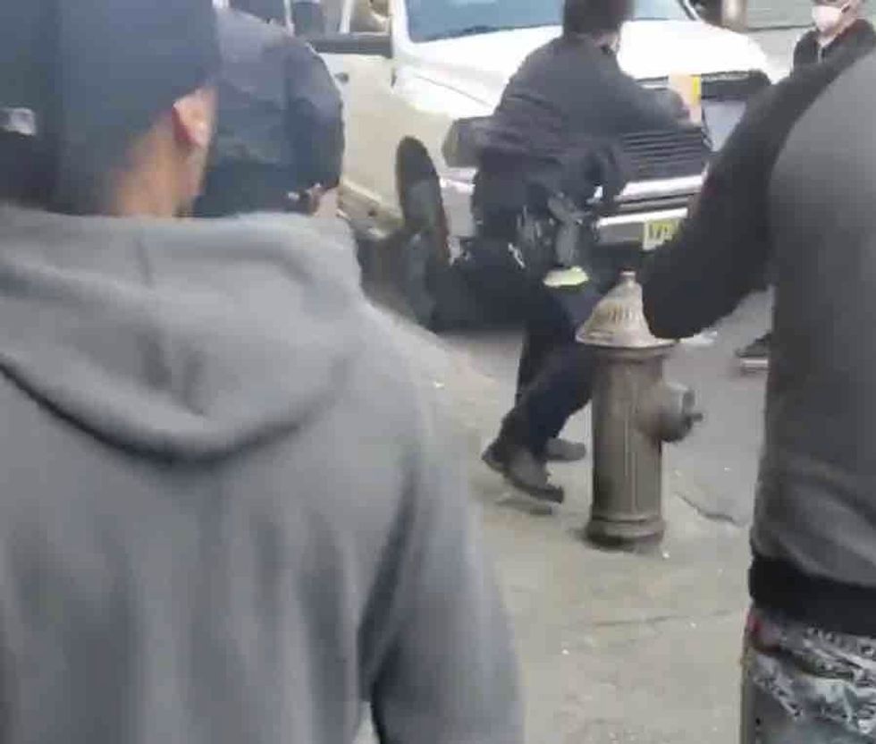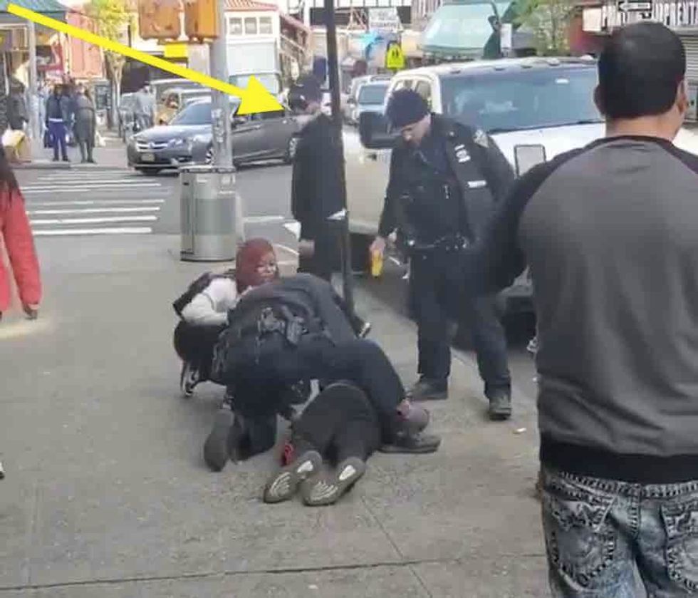 That man — 31-year-old Nelson Jimenez — suddenly punched the second officer in the head from behind, sending the cop's cap flying, after which Jimenez appeared to land at least two other quick punches.