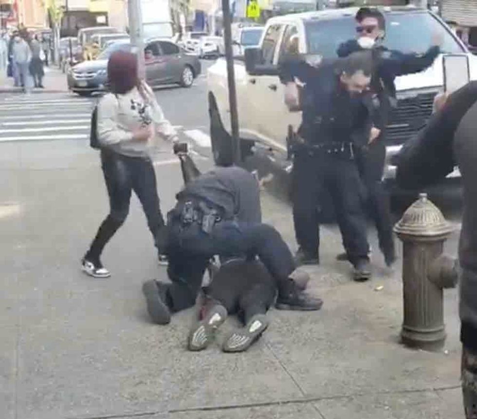 An officer in the clip can be seen on one knee holding Castro to the sidewalk while another officer stood nearby, the Post said — and a man wearing a medical mask, dark glasses, and a baseball cap walked by the scene.
