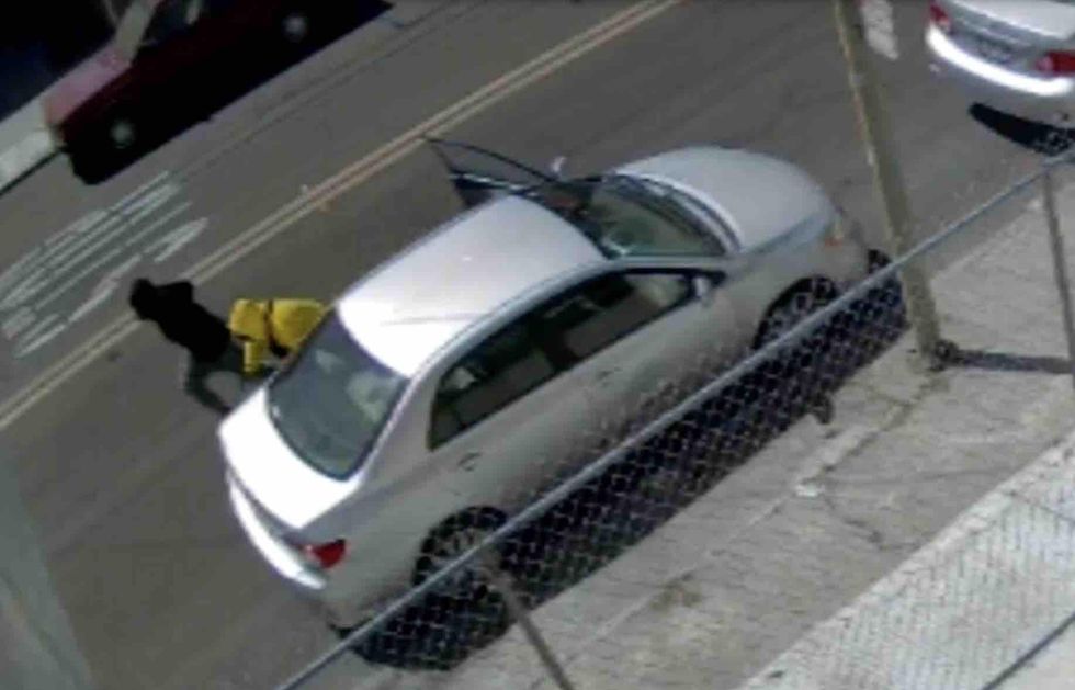 Surveillance video caught the moment when two hooded individuals approached an Oakland Uber driver's car around 11 a.m. Sunday and demanded he get out, KGO-TV reported.