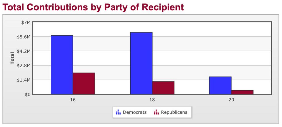 According to the most recent Federal Election Commission data compiled by Open Secrets: