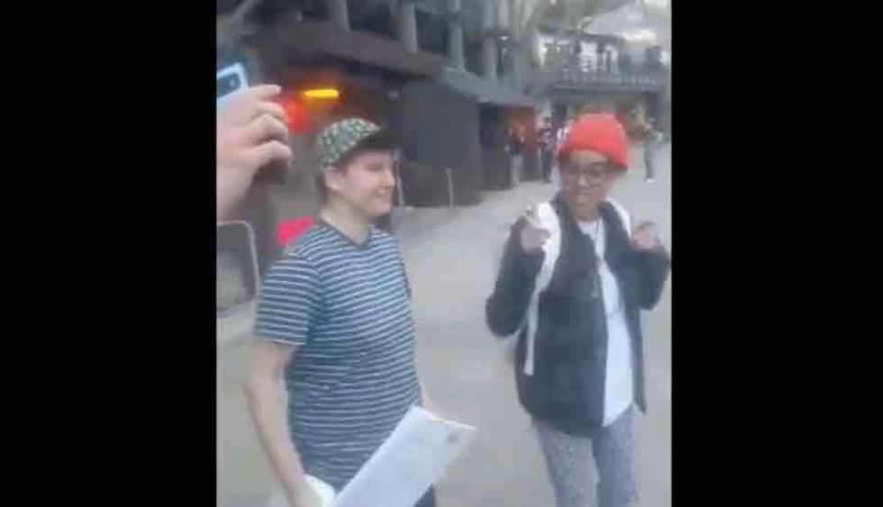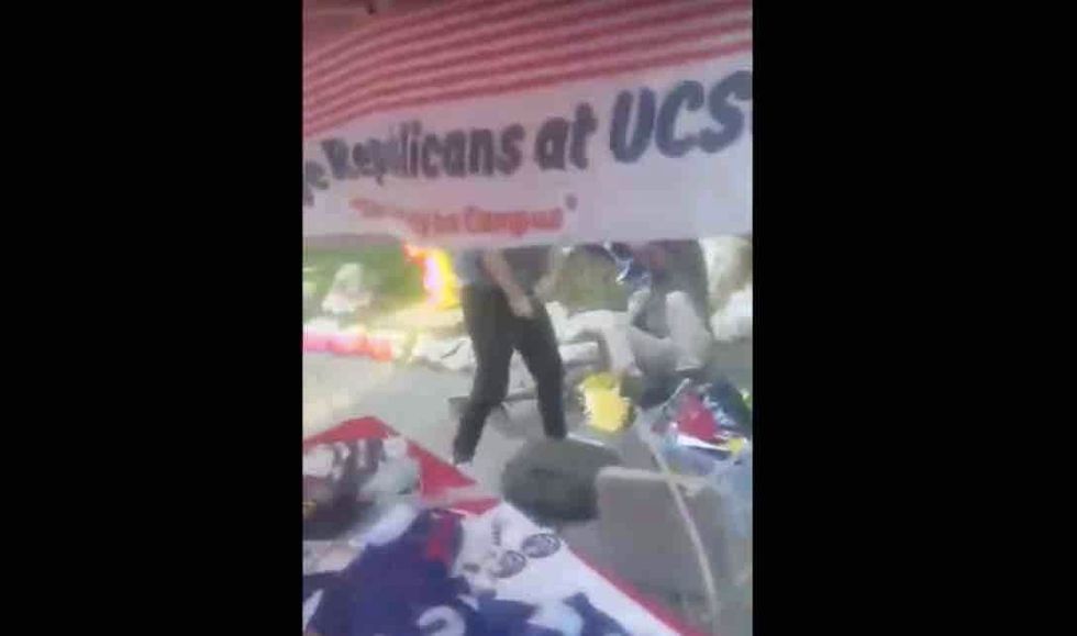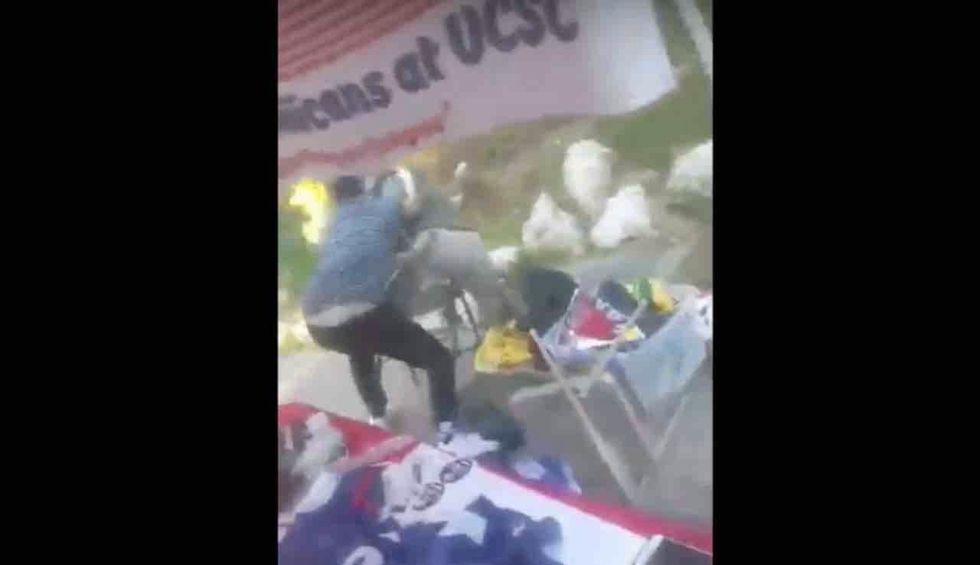 Video caught an ultra woke duo at the University of California, Santa Cruz, walking up to a table set up by College Republicans and destroying it last Friday.