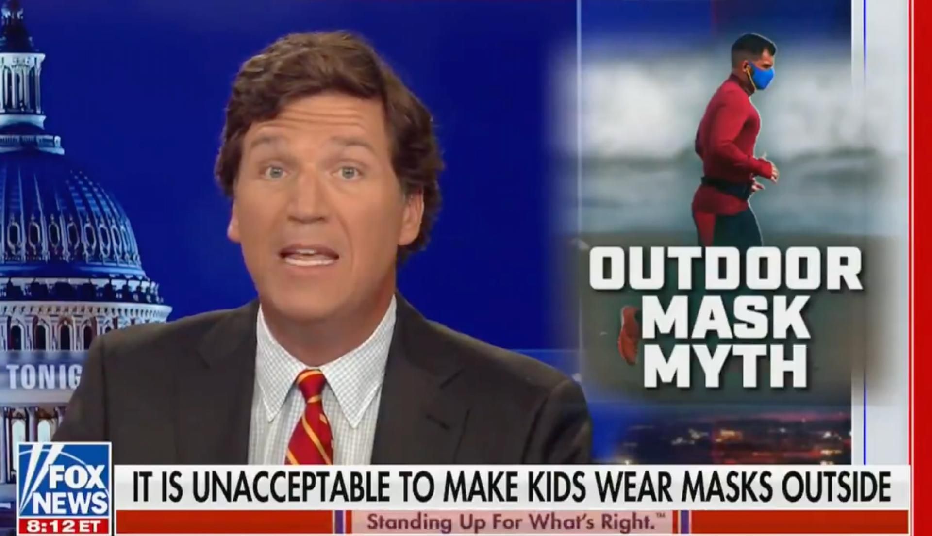 Fox News' Tucker Carlson is facing heavy backlash after he suggested viewers call child protective services if they see children wearing masks while playing outside.