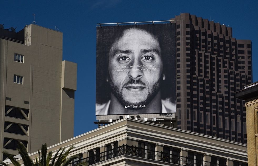 In 2016, Kaepernick launched the trend of athletes kneeling during the nation anthem at sporting events in protest of police brutality and oppression of people of color. He didn't get back on a team after that season, but he rose to fame for his stance — and then became the face of Nike's 30th anniversary campaign.