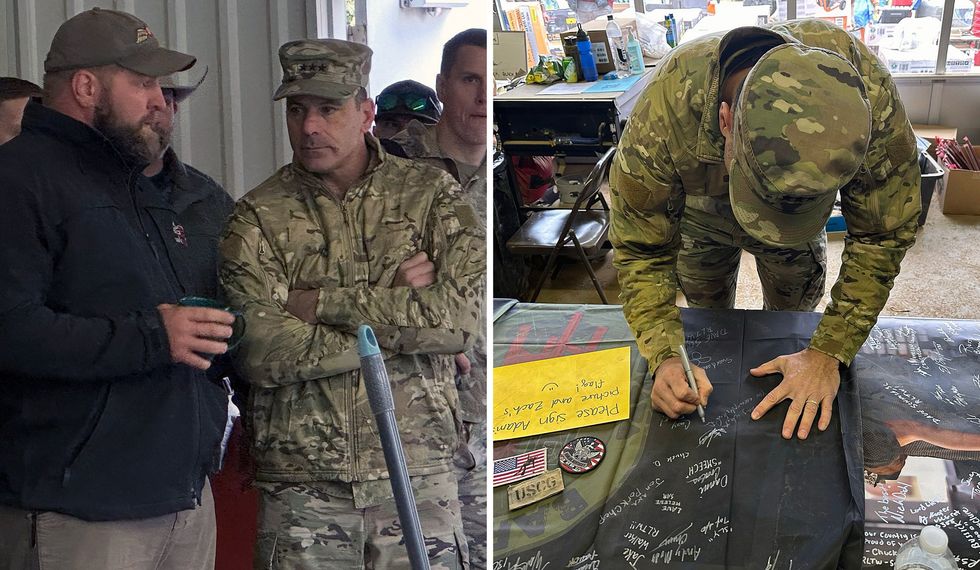 Lt. Gen. Chris Donahue of the XVIII Airborne Corps from Fort Liberty in Fayetteville, N.C., visited the makeshift Savage Freedoms Relief Operations center on Oct. 15 to see for himself what his commanders had been reporting about the all-volunteer supply chain.