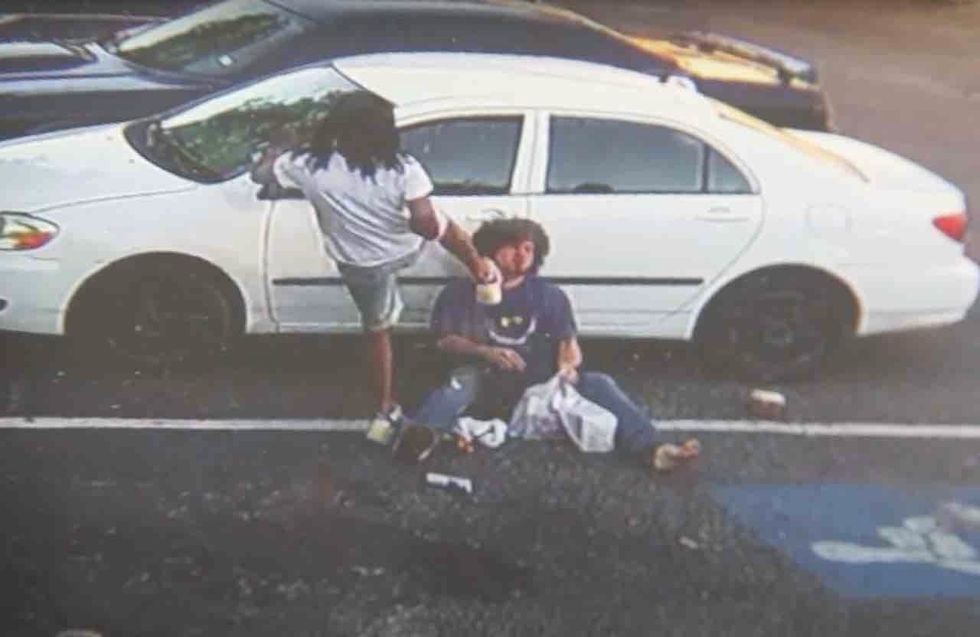 After he paid and left, the group met him in the parking lot and took turns kicking and punching him, the station said.