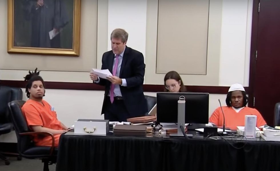 Video from inside the courtroom caught Rick Kaufman moving through a partition toward the defendants — but he was quickly restrained and then removed from the courtroom, WSMV said, adding that Kaufman sat outside the courtroom for the remainder of the hearing.