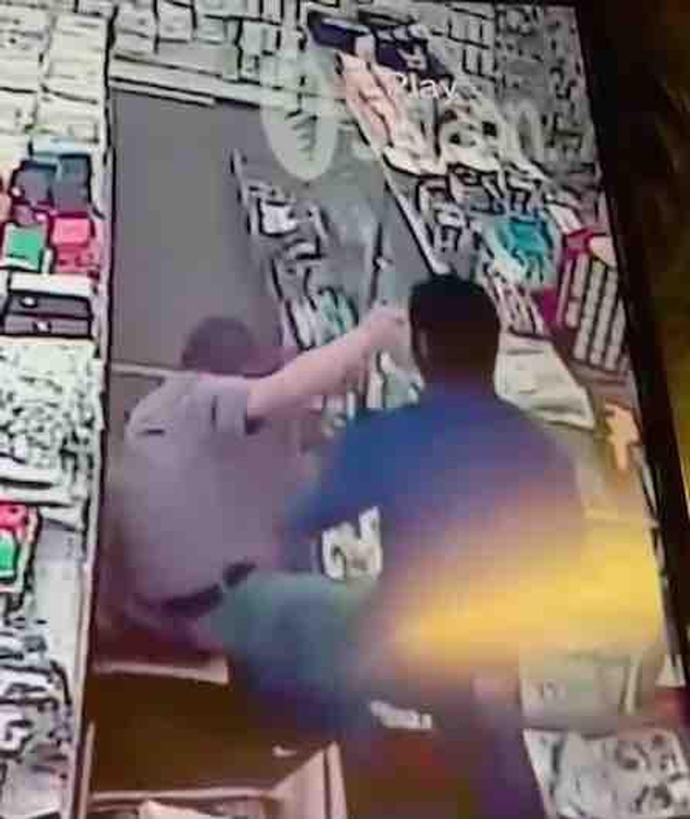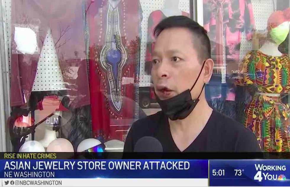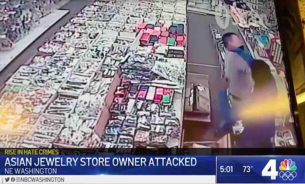 Surveillance video caught the moment when an angry customer walked up to Chong Hu Lu, owner of Max Trading in Washington, D.C., and punched him in the face and knocked him to the floor of his business Tuesday, WRC-TV reported.