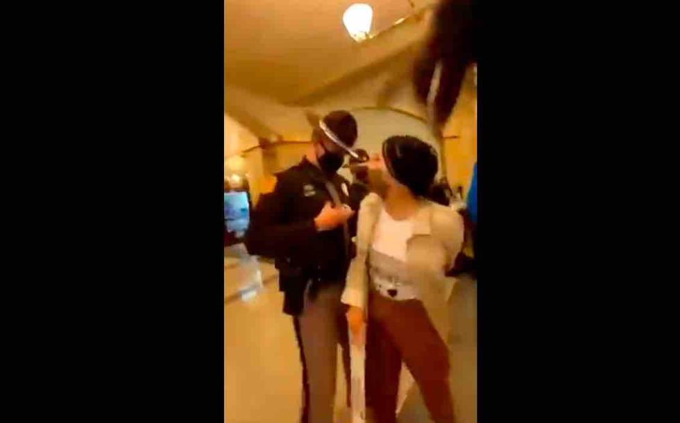 Cellphone video captured the chaos that erupted inside the Iowa Capitol on Thursday as state troopers arrested an 18-year-old protester for allegedly assaulting a police officer.