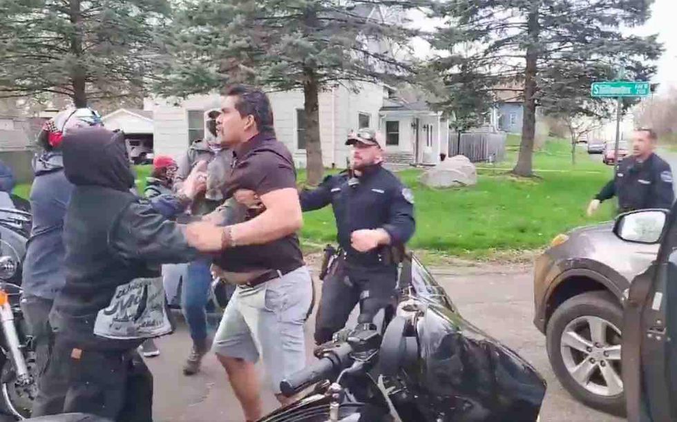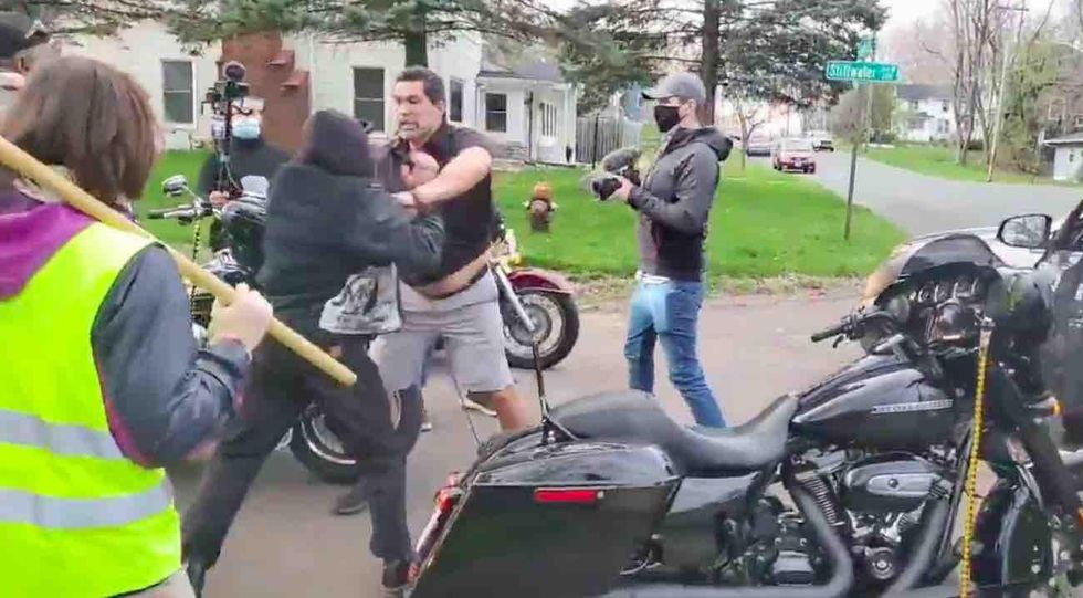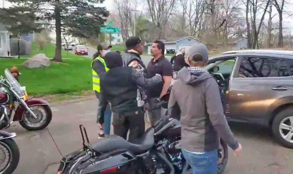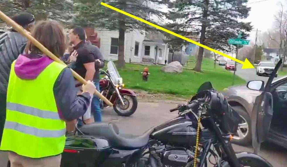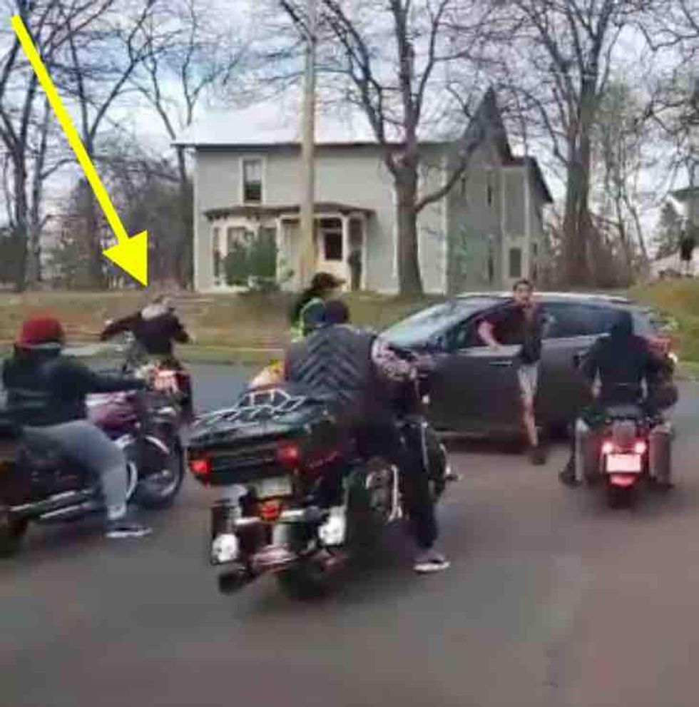 Video posted Saturday to Twitter begins with the angry driver exiting his vehicle after apparently trying to left turn on Stillwater Avenue — but police told TheBlaze Monday that the trio of bikers in front him were trying to make a left as well.
