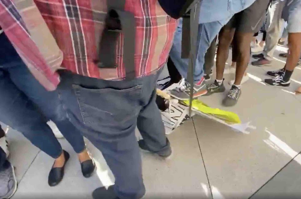 Then he dropped his "weapon" and began hilariously exercising his freedom of speech upon them.