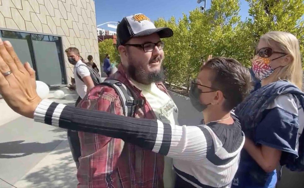 Well, that walkout happened Wednesday in Los Angeles — but a lone outlier managed to steal every decibel of the protesters' thunder.