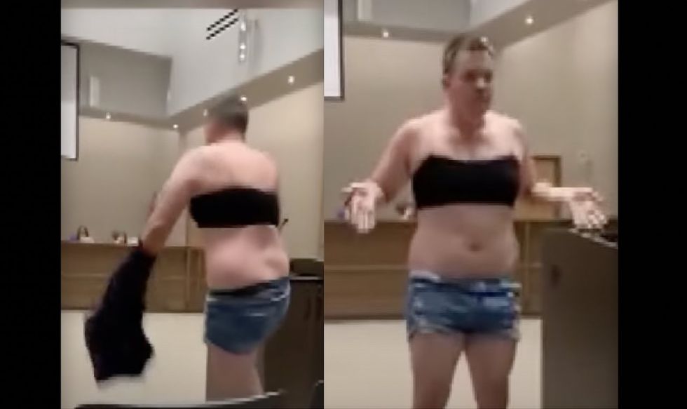 A father of four recently stripped down to a spaghetti-strap crop top and short shorts at a Gilbert, Arizona, school board meeting to protest a more lenient dress code proposal at his kids' school district.