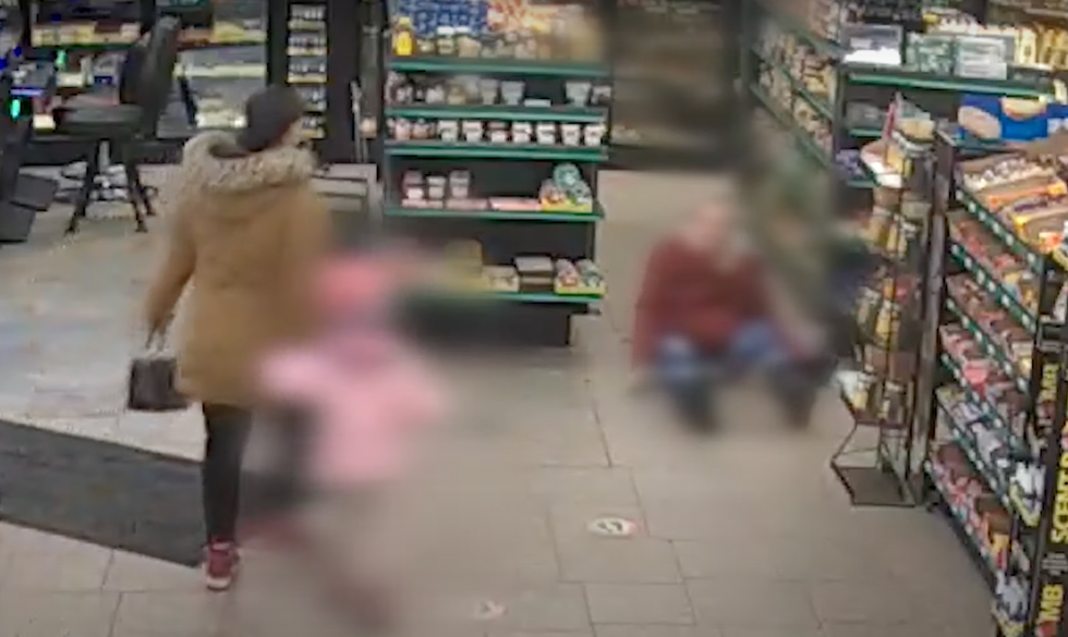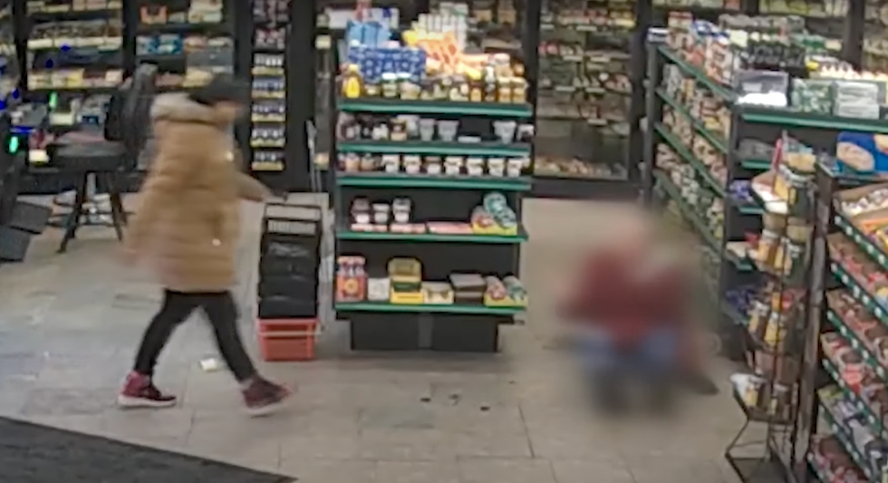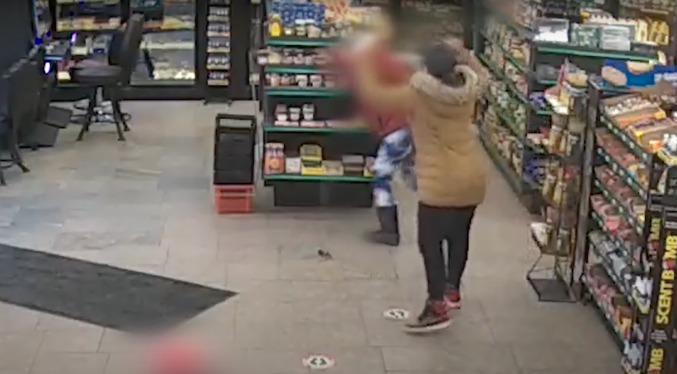 The suspect then walked over to the little girl, grabbed her hand, and appeared to begin to the leave the store — but she made a detour over to the victim she just knocked to floor and physically attacked her again.