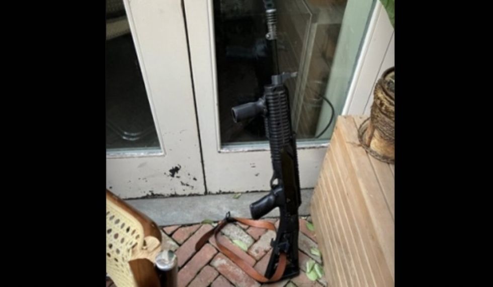 Fleming then threw the rifle over a fence, the DOJ said, adding that officers who recovered it discovered the firearm was a loaded semiautomatic Hi-Point carbine: