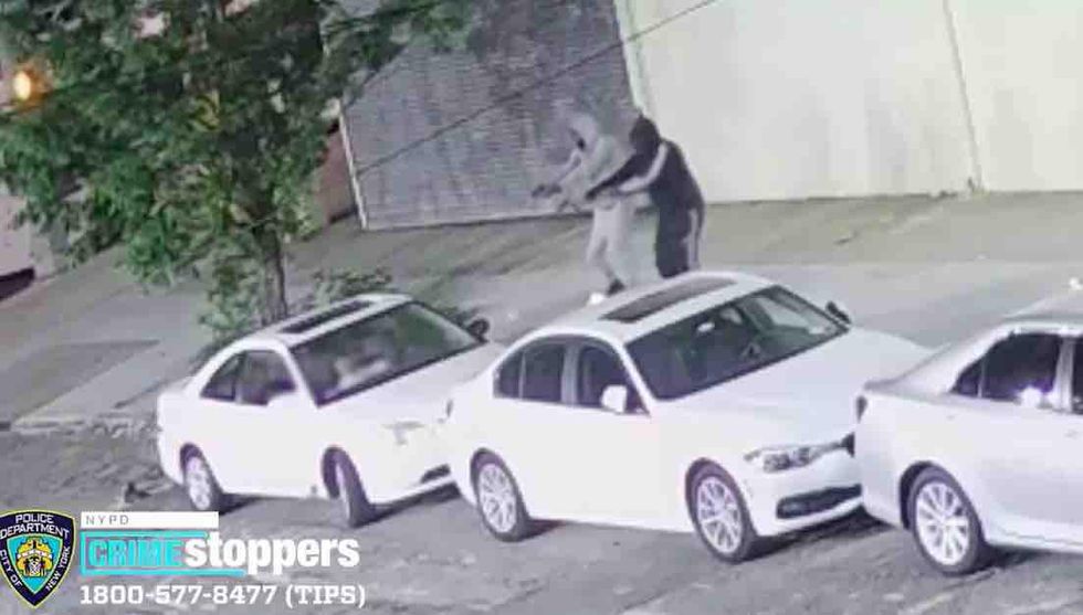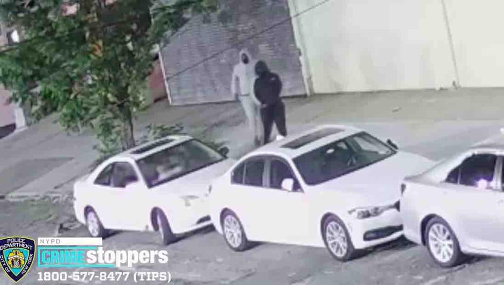 Video shows the hooded and masked gunmen strolling along the sidewalk just after 3 a.m. Aug. 5 when the suspect dressed in dark clothing turns toward a 2002 Honda Civic parked in front of 15 Williams Avenue in the neighborhood of East New York, the New York Post reported, citing the NYPD.