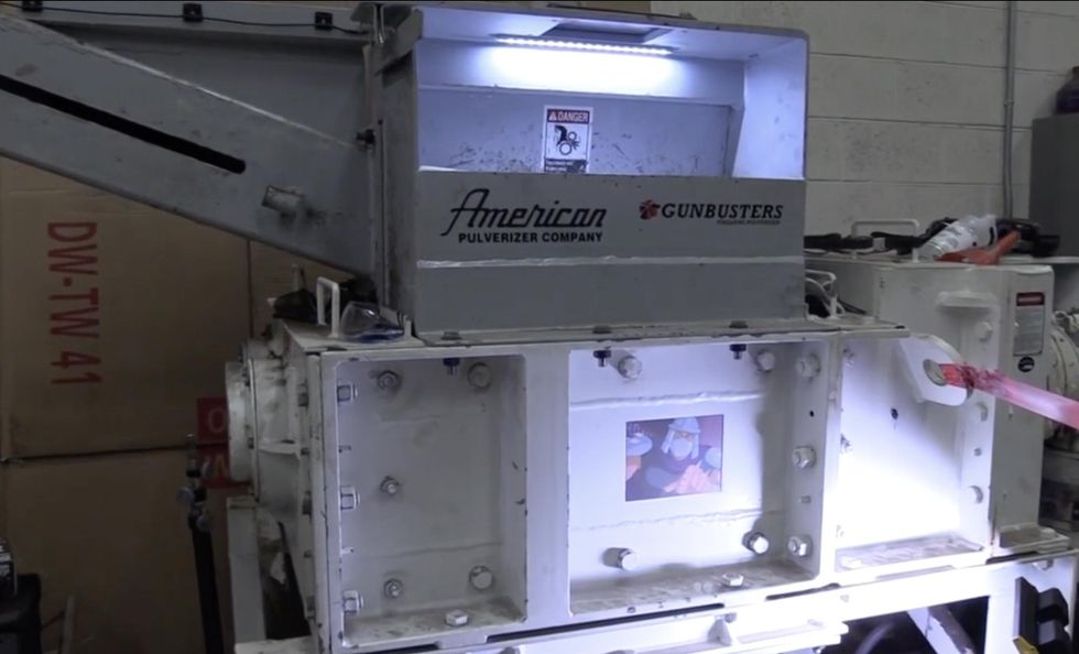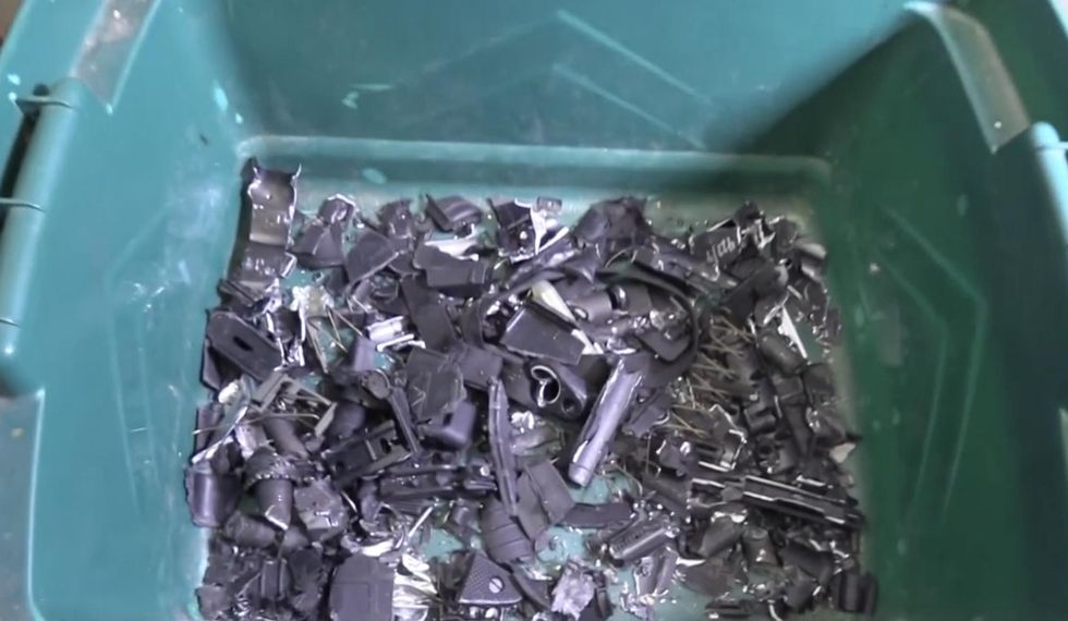 With that, the rifle is then placed into the shredder, followed by the sight and the magazine.