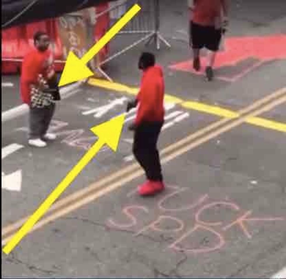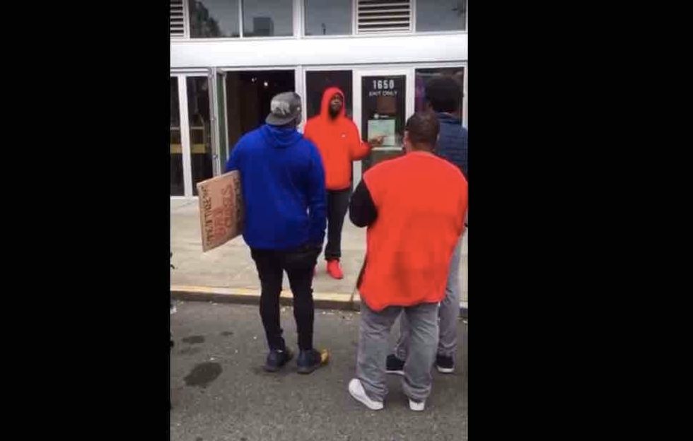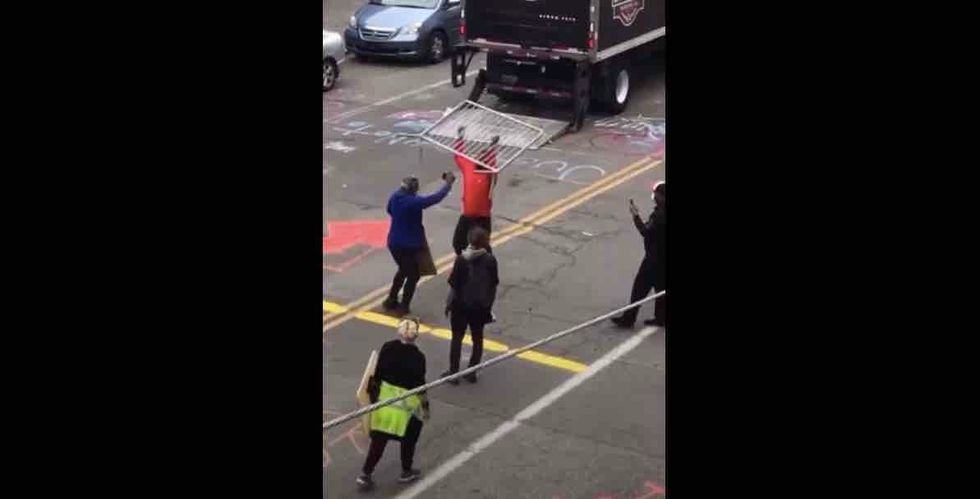 As the man walked past and prepared to toss the barricade, the observer asked, "So, black man versus black man? This is what they want!"